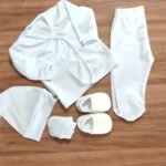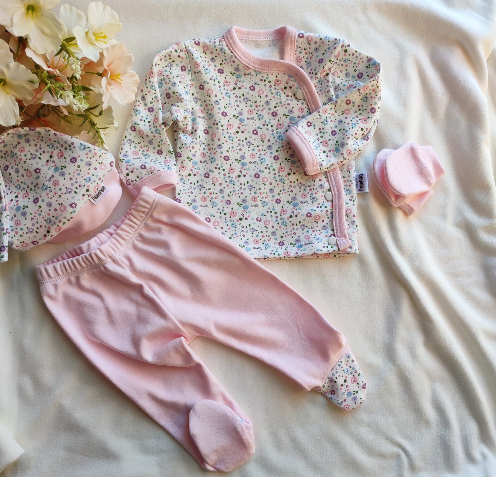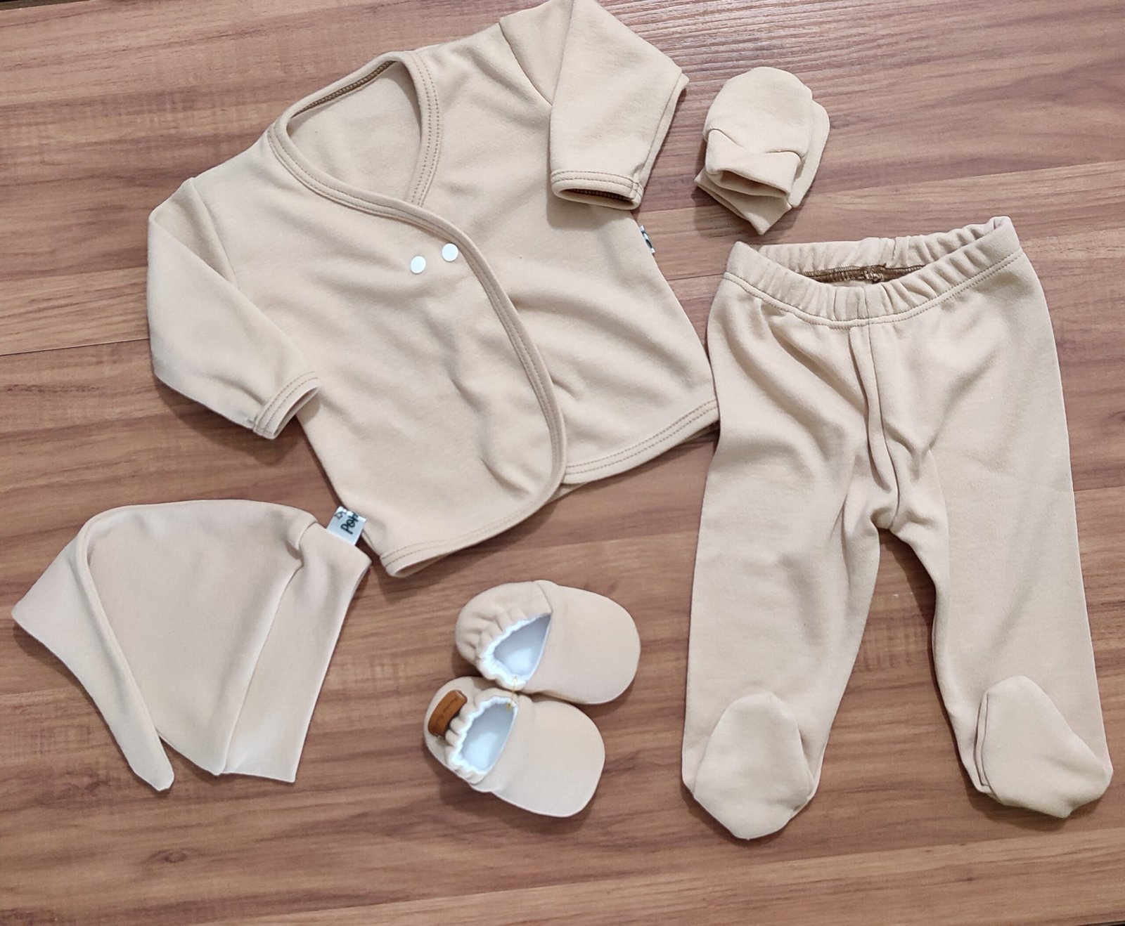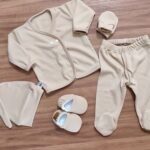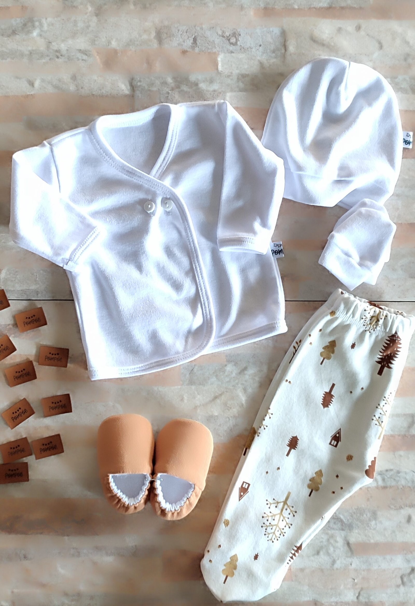 El juego se compone de: batita, pelele, gorrito y mitones.